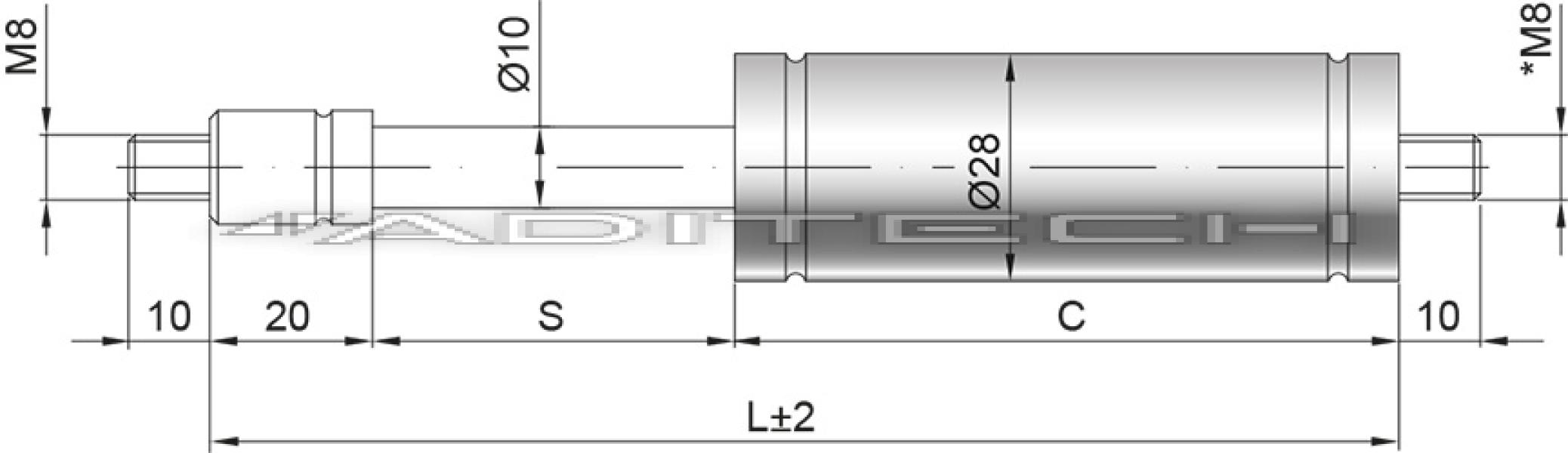 Kolvstång: Ø8 mm, rostfri AISI 316 L