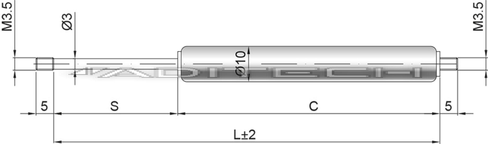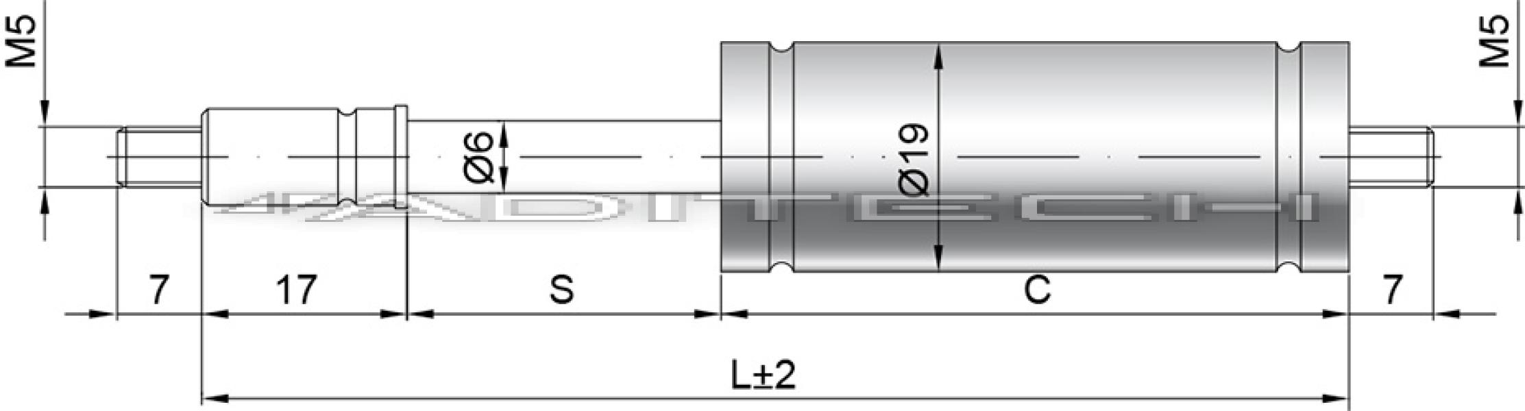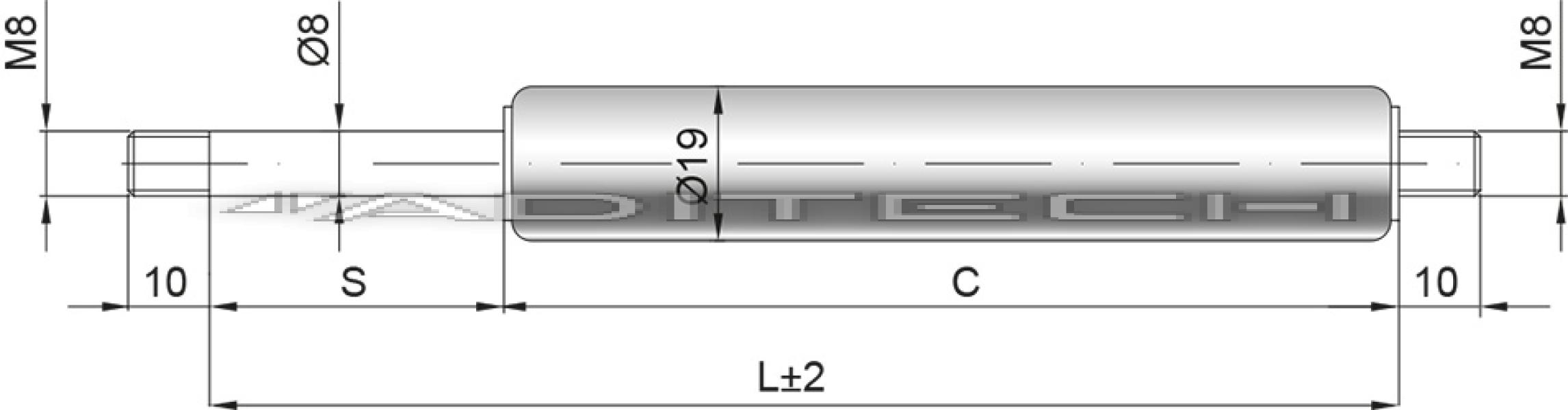 Passande blockerbar gasfjäder S6-19 med kolvstångsgänga M6x0,75.