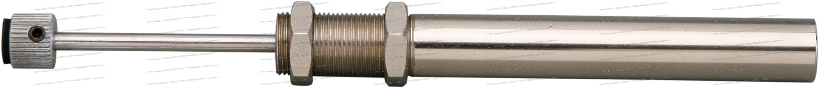 Material: Kolvstång i hårdförkromat stål, cylinderrör i förzinkat stål. Anslagsbuffert i aluminium med anslagsyta i gummi.